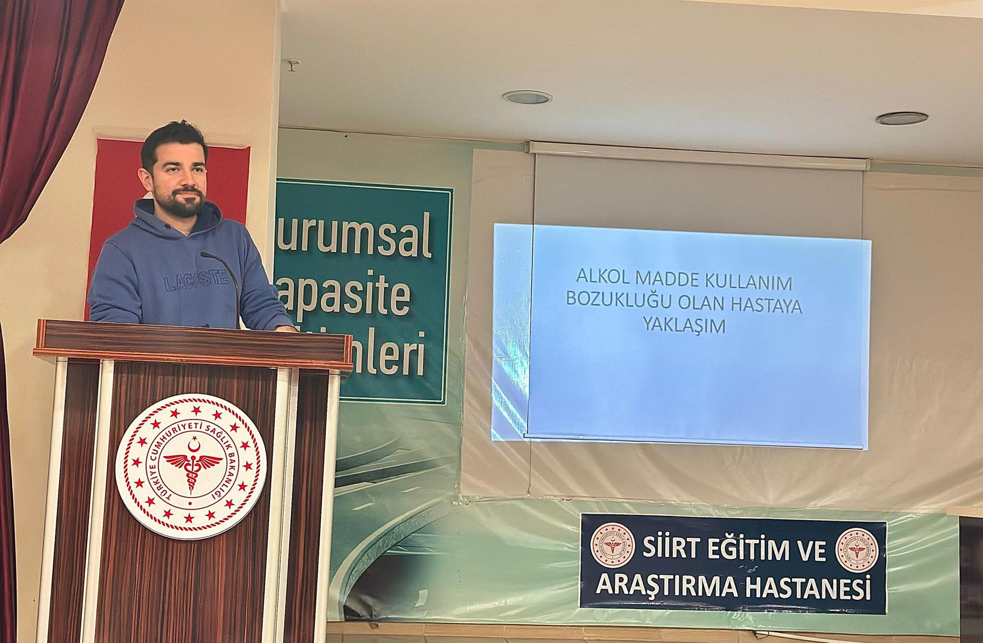 Siirt Üniversitesi Tıp Fakültesi, alkol ve madde bağımlılığıyla mücadele kapsamında sağlık personeline yönelik eğitim programı düzenlendi. Psikiyatri Uzmanı Dr. Furkan Metin Topur’un sunumuyla gerçekleştirilen eğitimde, bağımlılıkla mücadele eden bireylere yaklaşımda dikkat edilmesi gereken hususlar ve doğru iletişim yöntemleri ele alındı.